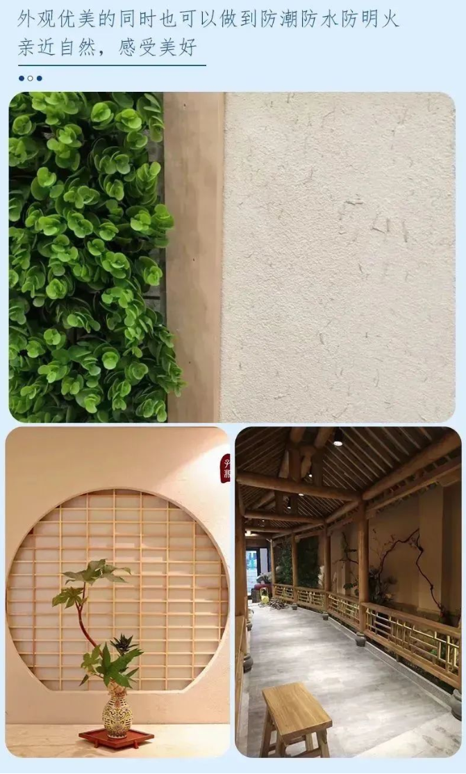 稻草漆不會像真正的籬笆一樣沒有附著力,也不會出現(xiàn)掉色的情況;它更加的富有活力,它的主要成分是石英粉,屬于環(huán)保材料,牢固性很好,能抵抗自然環(huán)境的侵蝕,且使用壽命長,具有清除甲醛、凈化空氣、保溫隔熱的功能,且色彩柔和、防火阻燃、有降聲減燥等效果,其特殊的紋理效果,自然淳樸,有一種返璞歸真,回歸自然的感覺。
